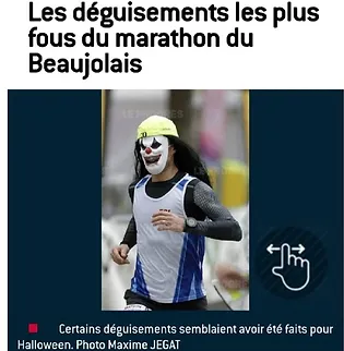 Un deguisement de dernière minute empruntée à mon fils pour le masque et ma fille pour la perrupe, une impro payante tellement il a fait sensation auprès des grands mais surtout aux petits, tout aussi amusés 🤣 qu'effares pour certains 😱J ai eu droit un peu à tout, des sourires, des tapotees de mains, des réflexions par dizaines et qq récurrentes comme : rhooo le clown méchant, comment il fait pour respirer, il doit avoir chaud, Allez le super clown... Courir décalé est tellement bon quand il n y a pas d'enjeu, du plaisir et rien que ça... Ou presque...C'était quand même l'occasion de faire une bonne séance avant la saintexpress dans 2 semaines, en rappelant l'allure marathon sur 3 fractions de 5000m et en y plaçant 3 recup de 2000m 😋 tout en portant fièrement le maillot de mon club qui m'apporte tant...21,1 km 250d+ 1h2431e / 5 816